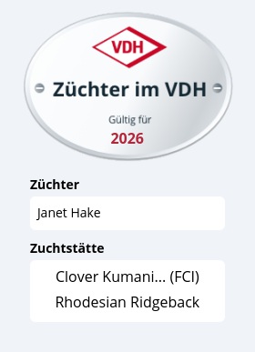 Außerdem sind sehr gute, dem Rhodesian Ridgeback angemessene Haltungsbedingungen und die Grundlagen der Welpenaufzucht gemäß der Zuchtordnung zu gewährleisten.